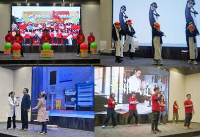 會議在歡樂的氛圍中進(jìn)行最后一項議程——紡出公司春節(jié)文藝表演。節(jié)目《旗開得勝》以霸氣的鼓聲震撼開場;小品《織夢同心,微力無邊》調(diào)侃出紡出人工作中的歡樂點滴;小品《不一樣的互聯(lián)網(wǎng)體檢》以詼諧的方式演繹了當(dāng)代人的“數(shù)字煩惱”;《馬到成功不猶豫》用斗志昂揚的歌聲表達(dá)了對未來的憧憬。