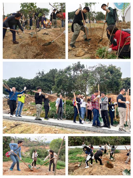 植樹現(xiàn)場(chǎng),大家兩三人一組分工合作,互相配合。揮鍬鏟土、扶植苗木、培實(shí)新土,各道工序一絲不茍,在大家的共同努力下,30棵沉香小樹苗被穩(wěn)穩(wěn)地深扎土壤,在溫暖的陽光下露出勃勃生機(jī),為初春的鄉(xiāng)村郊野增添了一抹“紡織”新綠和絲絲活力。