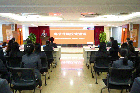 公司在廣德大廈15樓禮堂隆重舉行升國旗儀式。在雄壯的國歌聲中,全體人員肅立注目,表達(dá)對(duì)偉大祖國的無限熱愛和崇高敬意。公司黨委書記、董事長簡瑋儀代表領(lǐng)導(dǎo)班子發(fā)表致辭。她指出,過去一年全體紡織人迎難而上、砥礪奮進(jìn),圓滿完成了“十四五”各項(xiàng)目標(biāo)任務(wù)。2026年是“十五五”規(guī)劃的開局之年,也是公司實(shí)現(xiàn)新跨越的關(guān)鍵之年。她號(hào)召全體干部職工緊緊圍繞“改革創(chuàng)新齊奮進(jìn),智鏈全球拓新局”年度主題,以“一馬當(dāng)先”的銳氣、“快馬加鞭”的勁頭,錨定目標(biāo)、聚力攻堅(jiān),奮力奪取開局之年“開門紅”。